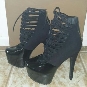 Brand new, never worn. Black Suede and patent leather. VERY COMFORTABLE and easy to walk in