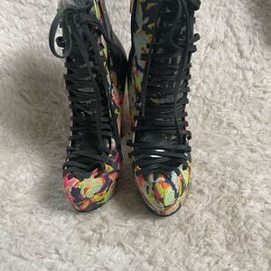Privilege Stayhigh Floral multi color lace up hidden platform ankle boots size6