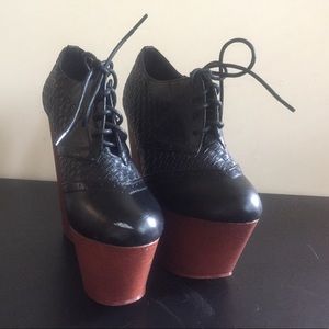 Out of this world "edgy" platform lace-up booties! 6in. heel. Size 5.5 but runs big (can fit a 6-6.5 foot). Brand new never been worn