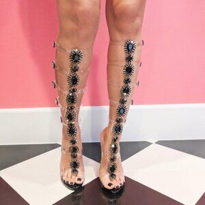TheseåÊ stiletto heeled sandals are unique in style and can show women's unique glamor. It can be match your skirt, pants, shorts, dress, tops in many occasions. Step into the new season with these total lust-worthy gladiator clear heels! Featuring a gorgeous jeweled embellished detailing, gladiator strap feature peep toe front and clear heel. To keep the shoes firmly on your feet, they have buckle straps with Shiny and beautiful diamond rhinestone decoration. Buy right away .