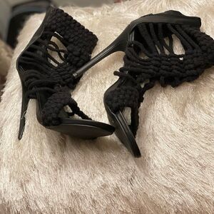 Sexy Knit Heel Perfect for summer!!! Crochet upper with man made materials. Zippered back for ease. Heel height: 5” in great condition, worn once. No damage