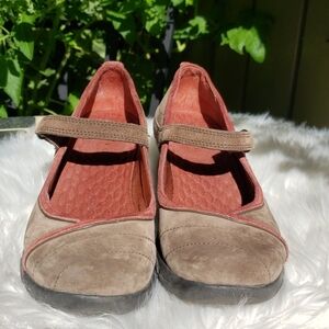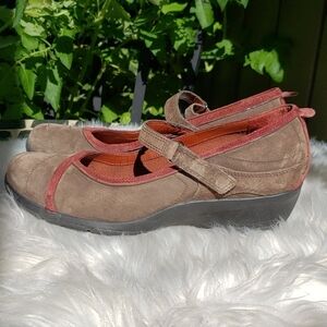 Privo brown & burgundy suede mary janes with 1.5" wedge heel - womens 8M