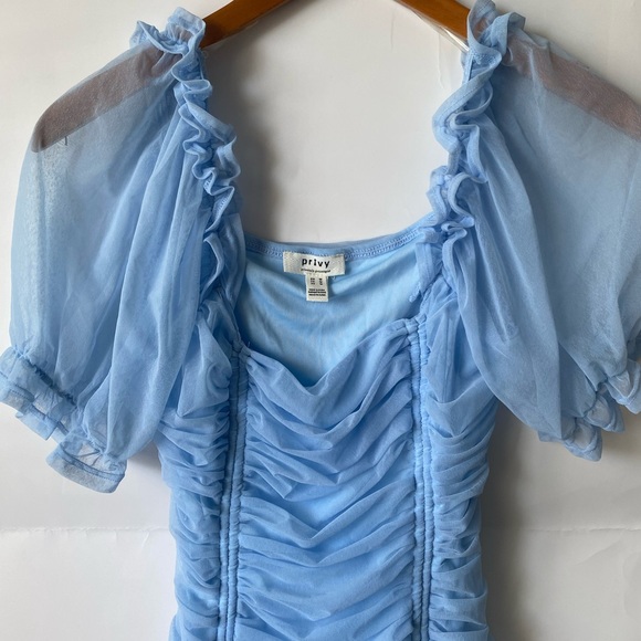 Privy Blue Ruffle Ruched Mini Dress Size M