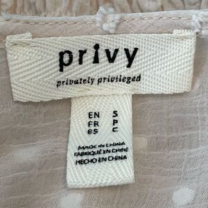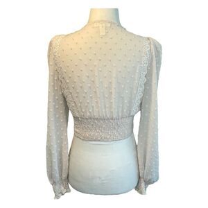 Privy Cropped Lace Blouse Cream Sheer Swiss Dots V-Neck Smocked Long Sleeve S