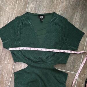 Privy Dark Green Sparkle Mesh Cut-Out Bodysuit