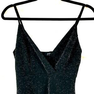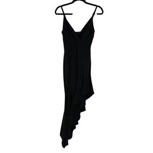Privy Dress Womens Small Black Asymmetrical Sleeveless V Neck Glittery Ruffled