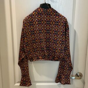 Great gift for the Holidays! Eye-catching top with bold geometric design. Perfect for a stylish look. Label says medium, but it is a very small medium.