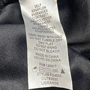 This ladies dress is brand new with tags, no noted flaws. Please see all photos as this is the exact garment you will receive. Measurements taken with item laying flat- armhole to armhole is 16", length from high point of shoulder to bottom hem is 38". Fully lined, back zip entry. Polyester/spandex blend, hand washing suggested.