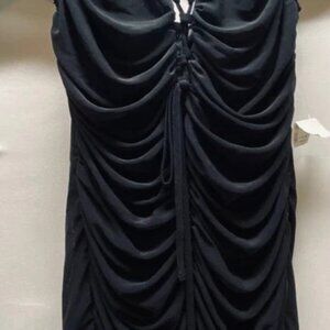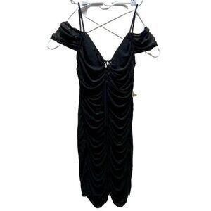 Privy Off Shoulder Shirring Mesh Dress Women's Large Black Cocktail Party NWT