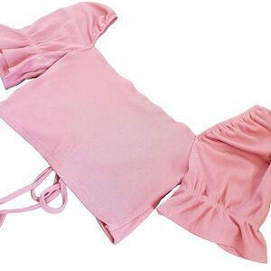 Privy Pink Ribbed Crop Top with Ruffle Statement Sleeves Women's Size Medium