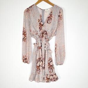 Privy Roses Floral Ruffled Chiffon Mini Dress Lavender Pink