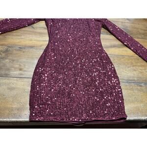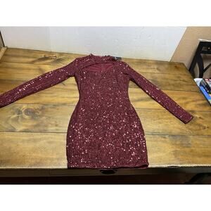 Privy Sequin Burgundy Long Sleeve Cocktail Dress Size Medium NWT