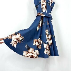 Privy Women’s Sz S Navy Beige Floral Print Fit and Flare Mini Dress High Neck