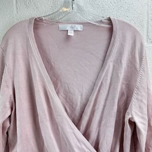 Prize Stretch Silk Blend Faux Wrap Long Sleeve V-Neck Pink Blouse Top Sz XXL