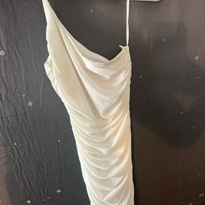 Chic white mini dress. Strapless design. Perfect for a night out.