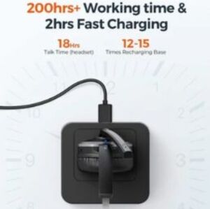 Long Battery Life: A sleek magnetic charging base is included with the Mpow M5 Bluetooth headset, which supports recharge the headset 12 to 15 times; Also, 2 hours charging can offer up to 18 hours continuous talking time and 200 hours standby time