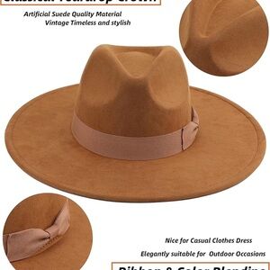 Pro Celia Big Wide Brim Fedora Hat Women’s Large Felt Panama Rancher Hat No Band