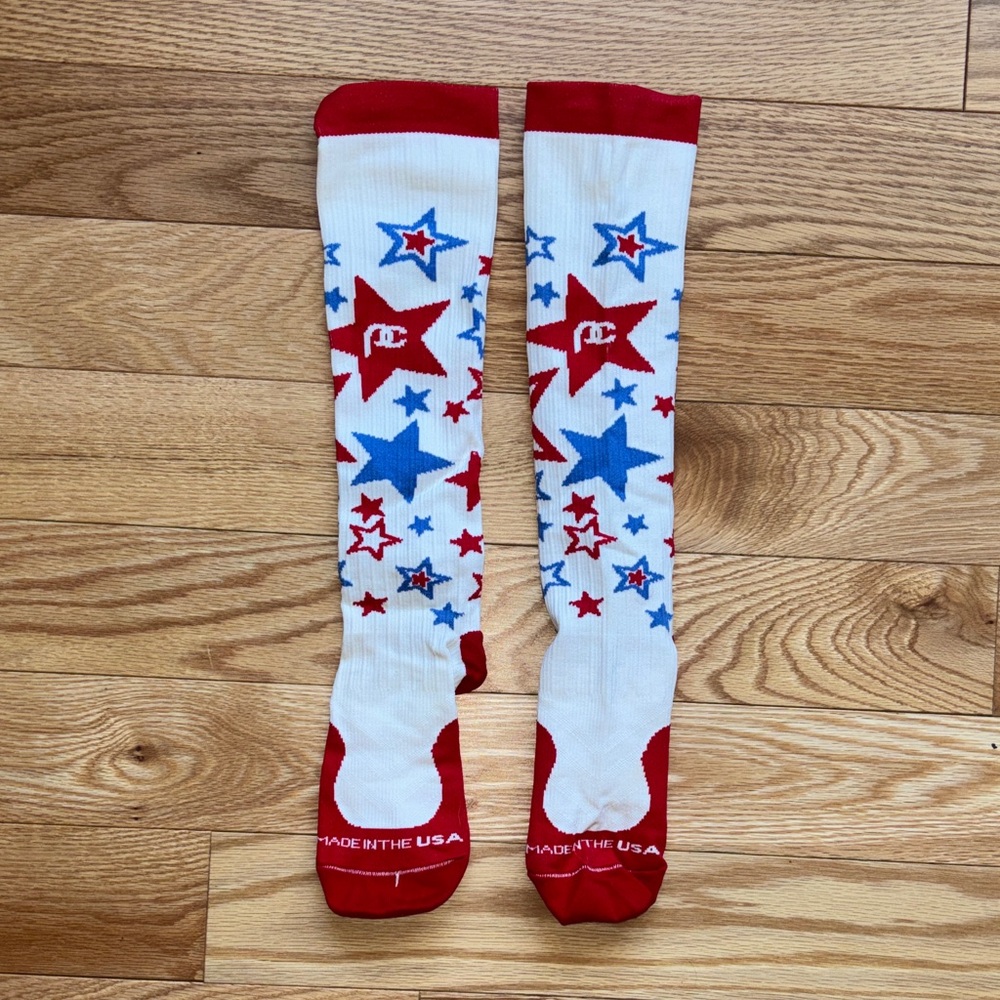 Step out in style with these vibrant knee-high socks featuring a bold star pattern. Perfect for adding a pop of color to your athletic wear.