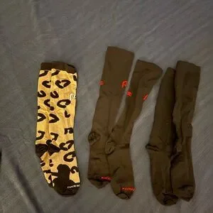 3 sets of pro compression, compression socks. Never worn without tags. They are small/ medium and just didn’t fit. Have many other pairs from this brand and love them but these did not fit.