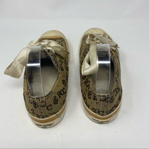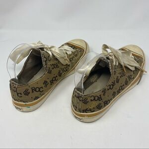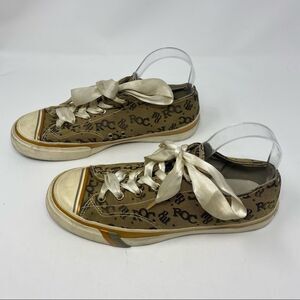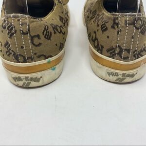 Fun Rocawesr sneakers from Pro Keds. A rich gold color with ribbon laces they have a patina to them, but have little visible wear.