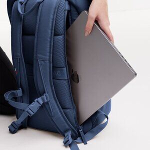 Maximum organization for on the go – with many front and interior pockets and 25L storage space. Made with recycled Ocean Impact Plastic.