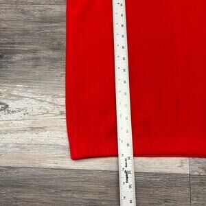 In excellent pre-owned condition, red white gray, lightweight, 100% polyester, chest and sleeve embroidered logos, long sleeve, crewneck, elastic cuffs and hem, casual, sporty 2000s y2k