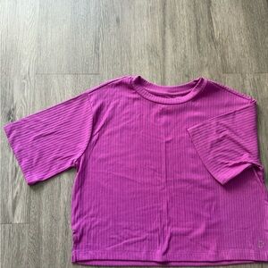 Comfortable pink ribbed tee. Ideal for everyday wear.