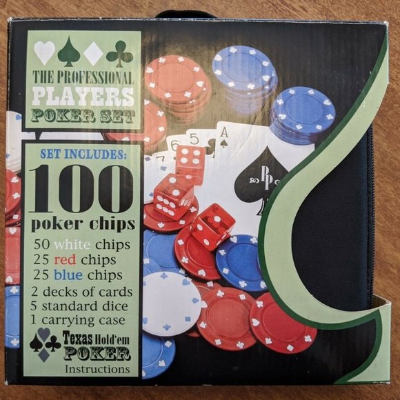 Pro Players Poker Set - 100 Chips - 5 dice - 2 card decks - Carrying Case * New.