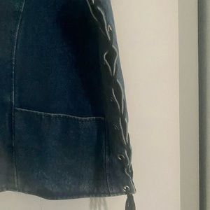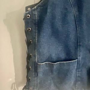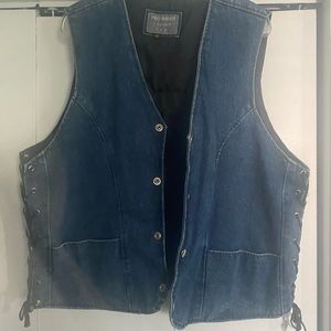 Blue Denim Pro Rider Vest with Metal eyelets with tie-up straps , two pockets from bottom and to hidden inside . ( not leather ) . Size 48 L