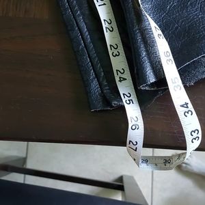 Inseam approximately 25 inches. Zippers on side and 2 buttons at the bottom. One front pocket. Waist adjusts from approximately 16-19 inches with just belt. Can also use back tie to adjust. These are gently worn but still in decent condition.