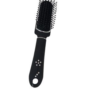 Pro Salon Flat Hair Brush TEASE STYLING Black RHINESTONES Handle Fancy 7" Hairdo
