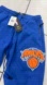 Stylish blue joggers featuring New York Knicks logo and text in orange.