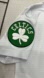 White t-shirt featuring a bold green Celtics logo. Perfect for fans.