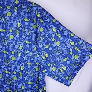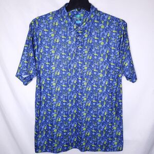 Pro Tour Golf Shirt Mens Large Blue Coral Print Ocean Starfish Seashell Coolplay