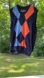 Pro Tour men's sleeveless v-neck argyle cotton sweater vest size large pre-owned in good condition with some wear. Stored clean in a clean smoke free home. Colors are navy blue with light blue, blue, and orange.