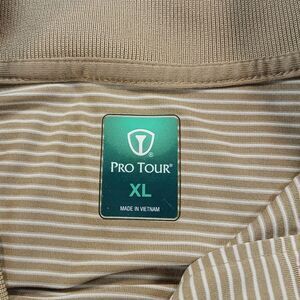 Pro Tour Men's XL 3 Button Golf Polo. Gold/ White Stripe. Arm Logo..............