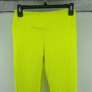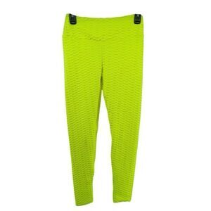 Pro X2 Women’s Neon Lime Honeycomb Textured High Waist Ruched Butt Lifting Yoga Active Leggings Small