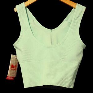 Pro-Fit Sports Bra. Sea Green. Wide Botton Band. Ribbed Fabric. Moisture Wicking. Removeable Foam Cups. Polyester Blend. Women’s Size Small. New with Tags.