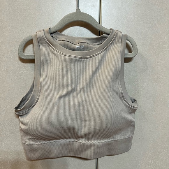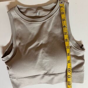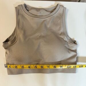 Stylish nude ribbed crop top. Sleeveless design. Padded.
