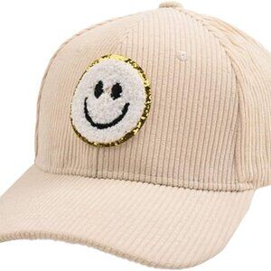 ProMindsFun Cream Smiley Face Cap Corduroy Women NWOT