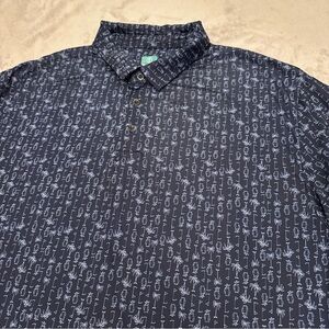 ProTour Athletic Fit Mens XL Full Print Short Sleeve Polo Golf Shirt Dark Blue