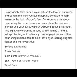 Antioxidants and peptides help smooth under eye area and to reduce dark circles