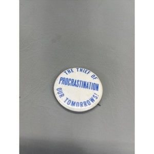 Procrastination The Thief Of Our Tomorrows Pinback Button Vintage Fast Shipping