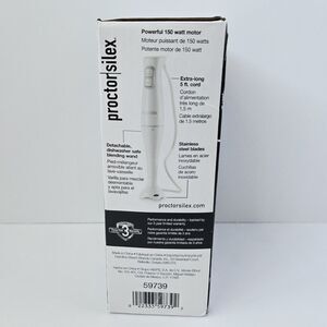 Proctor Silex Electric Immersion Hand Blender Dual Speed Dishwasher Safe