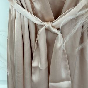 Vintage look to this silky long robe with furry detail on the wrists. Never worn. NWOT