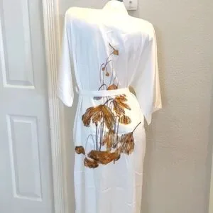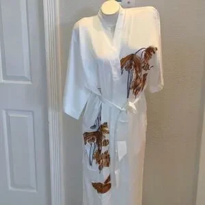 This lovely white Prodesign robe with embroidered design. Side slits. (ARI)