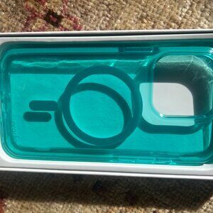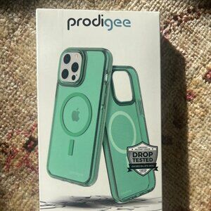 This Prodigee phone case is for an IPhone 13 Pro, in a beautiful teal green color, with impact absorbing shell. New, and never used. On the website it reads: "The new Safetee Flow integrates a magical translucent multi-color gradient design with Safetees’ proven protection and style.