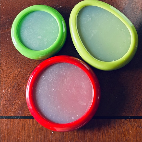 Fresh produce savers in shape of items tomato lime/lemon & avocado. I have trouble using due to my disability.