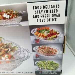 Prodyne Buffet On Ice Vented Food Tray Dip Cup Bowl Crystal Acrylic 3 pc Set