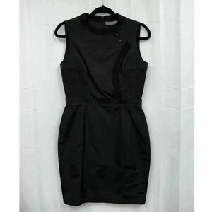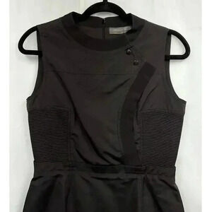 Proenza Schouler (8) Black Silk Crew Neck Sleeveless Grosgrain Sheath Mini Dress